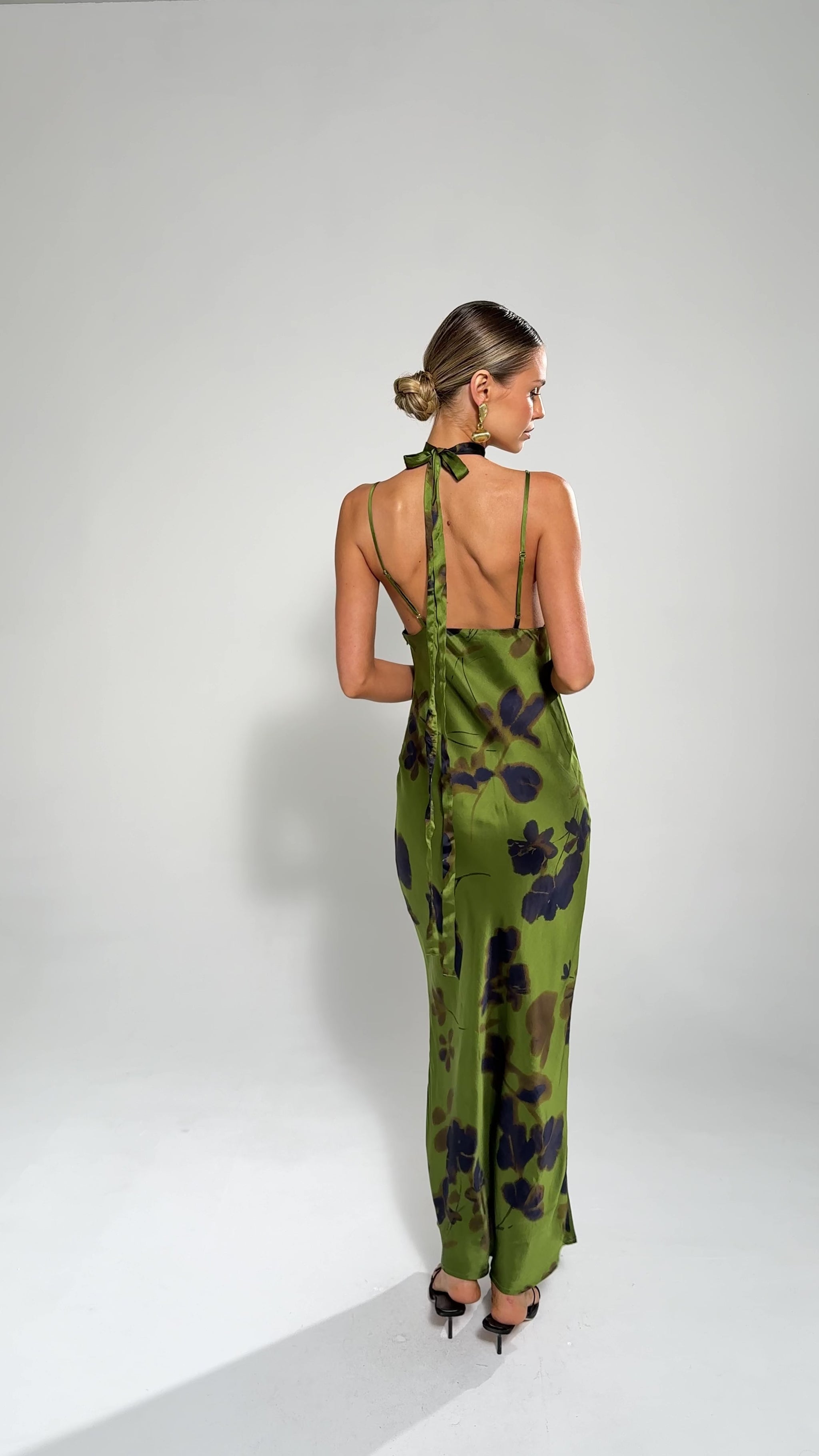 The Madeline Dress features a sophisticated maxi V-shaped neckline that enhances the bust area with elegance. It comes with a versatile scarf neck tie, allowing you to customize your look with a polished, refined finish.